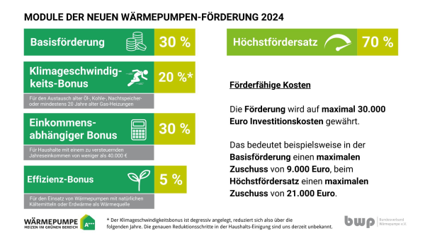 einkommensabhängigen Bonus für Haushalte mit zu versteuernden Jahres-einkommen von unter 40.000 € ergänzt. Der Wärmepumpen-Bonus für klimafreundliche Kältemittel oder die Nutzung von Erdwärme wird